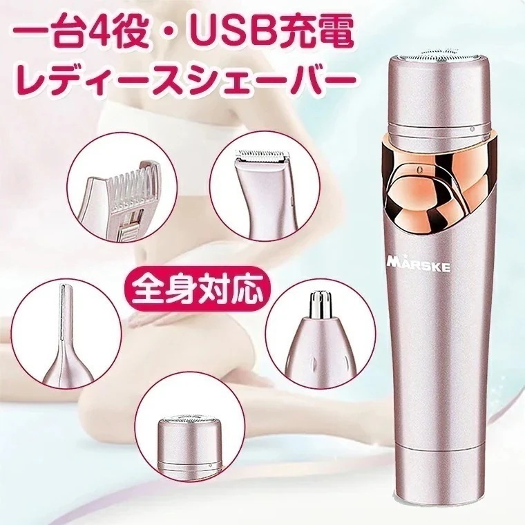 シェーバー 女性用 顔 ボディ レディースシェーバー 電動 4in1 顔そり 鼻毛 眉毛 vio 脇 足 シェーバー 充電式 水洗可能 電気シェーバー 鼻毛カッター フェイスシェーバ