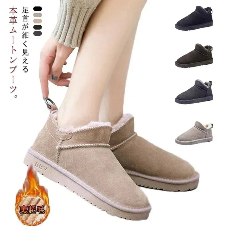 足首が細く見えるブーツ 滑らない レディース 疲れない靴 ショートブーツ スノーブーツ ふわふわ 痛くない 防寒 あったか かわいい ムートンブーツ ブーティ 歩きやすい おしゃれ 裏起毛 シンプル