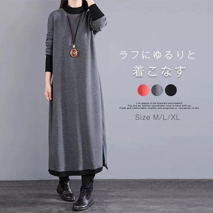 マキシワンピース 長袖 大きいサイズ 秋冬 ロング レディース ワンピ ミモレ丈 ロングワンピ スレンダー きれいめ おしゃれ あったか 柔らか 着回し 可愛い 細見え こなれ感 ファッション 無