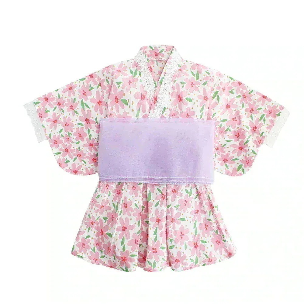 速達子供浴衣 子供 セパレート 浴衣ドレス 韓国子供服 韓国子ども服 キッズ カラバリ 女の子 帯 花 リボン 90-130cm