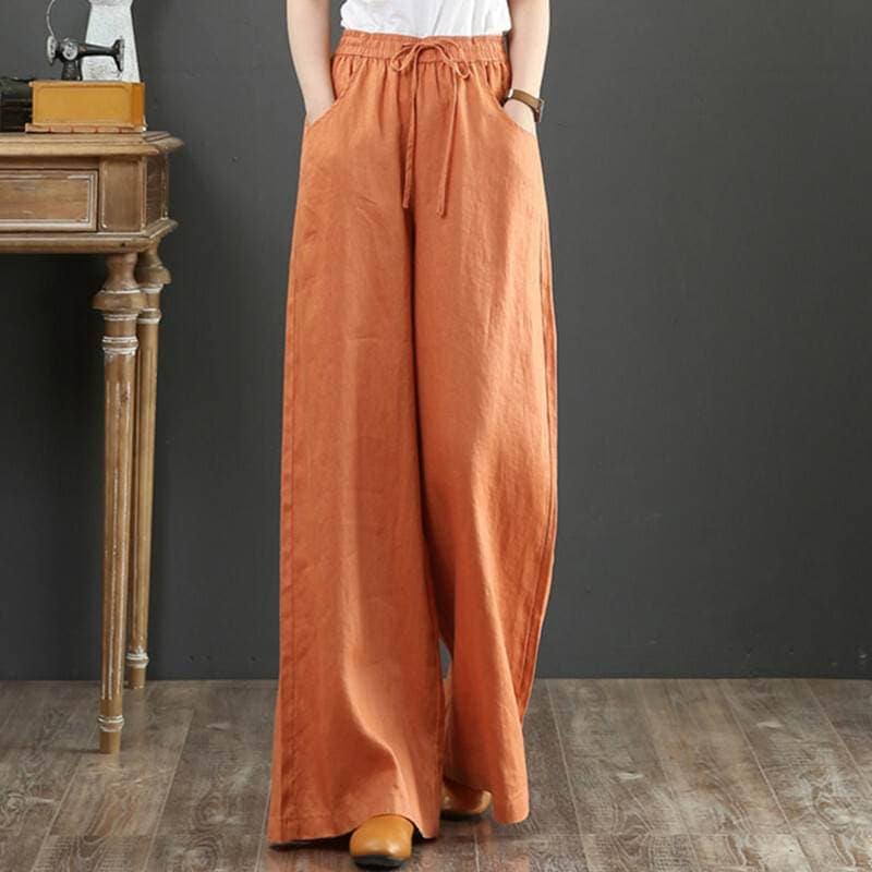 パンツ レディース ワイド 個性的 マキシ丈 Aライン ウエストゴム 無地 オレンジ 黒 グレー 白