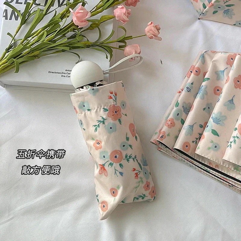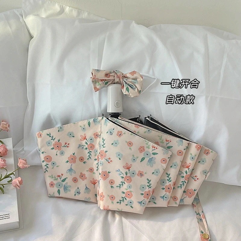 準備したいレイングッズ 小花柄女性用傘 晴雨兼用 自動日傘 日よけ Uvカット イン コンパクトビニール日傘 韓国ファッション