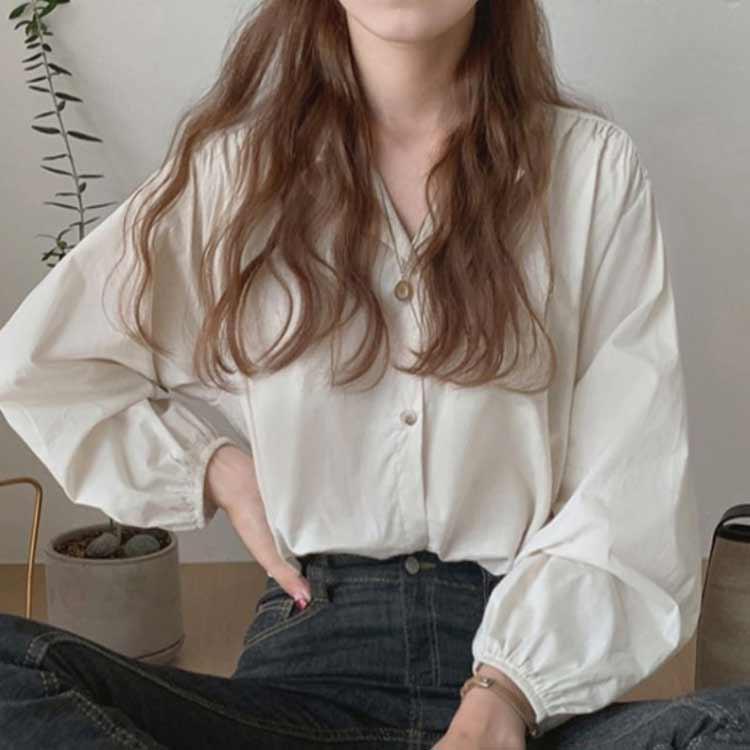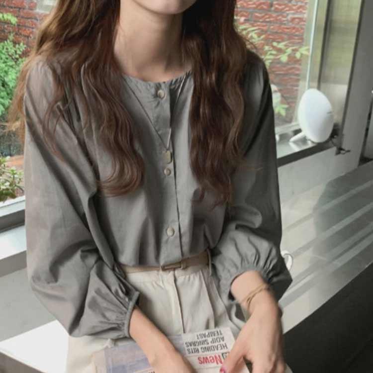 前開き 長袖 レディース シャツ シャツ クルーネック 品質いいな新品 ブラウス 秋 シンプル シャツ 春 夏 仕事 ゆったり トップス 通勤 ワイシャツ