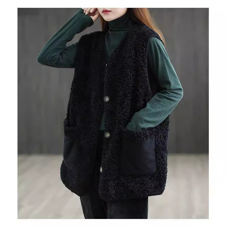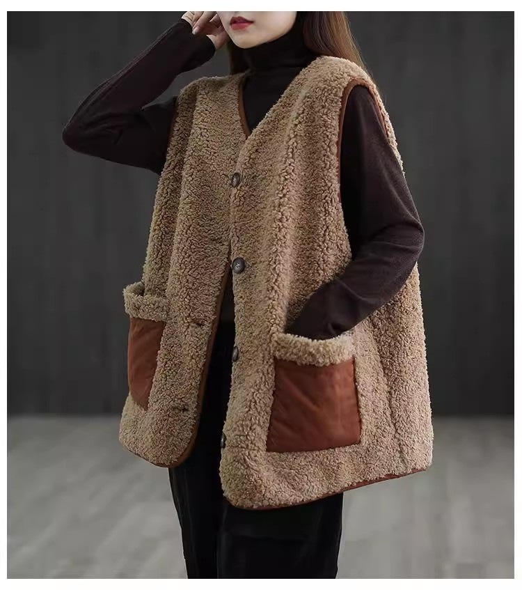 秋冬 カジュアル シープスキン風 ベスト ルーズ ポケット 大人気 上品 カラーリング アウター