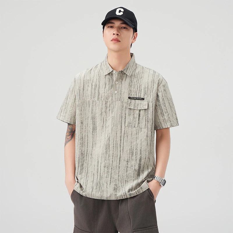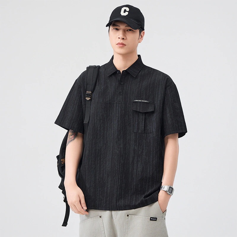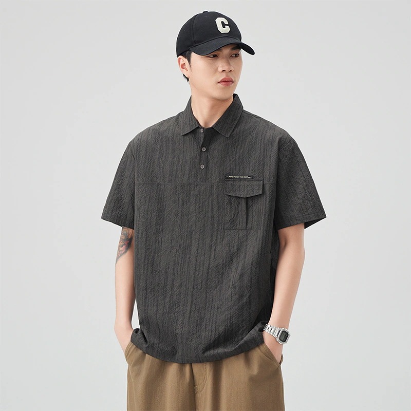 POLOシャツメンズ夏の薄いセクションラペル半袖Tシャツ 2025緩い百トップスの新しい潮メンズTシャツ