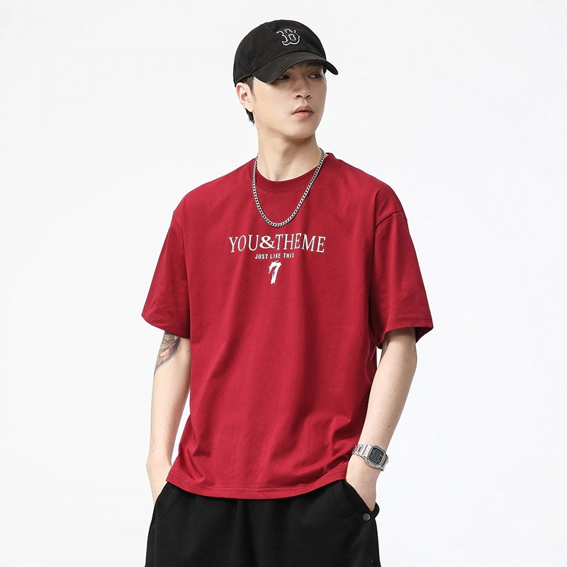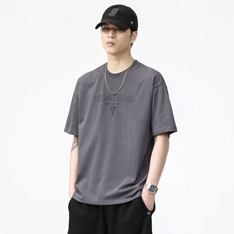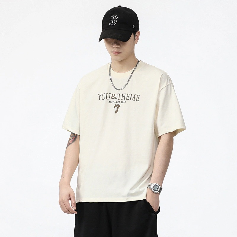 Tシャツ メンズ 2025 新作 夏 薄手 半袖 トレンド 万能 プリント ラウンドネック アイスシルク 半袖Tシャツ