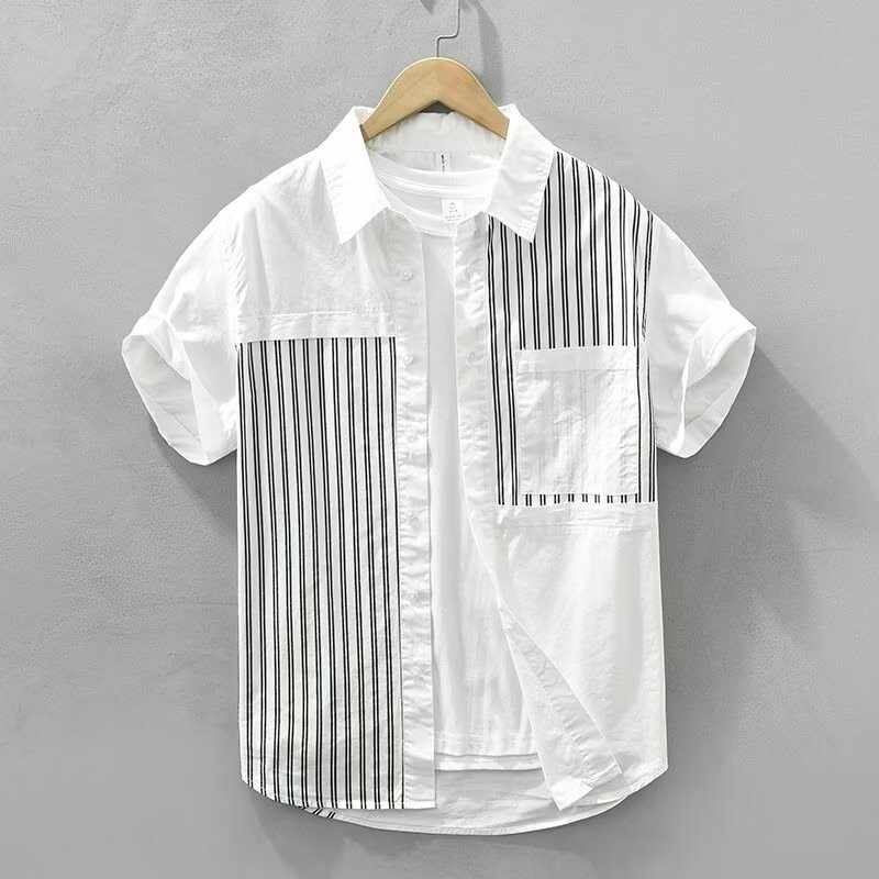 メンズファッション シャツ シャツ メンズ 日本製 カラーブロッキング ストライプ ワークウェア ジャケット 夏 カジュアル ファッション 五分袖シャツ
