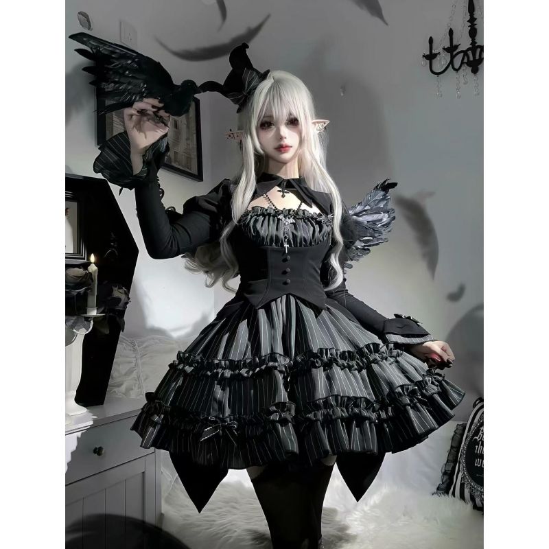 ブラック ロリータ トップス ストライプスカート ダークスーツ コスプレ コスム ワンピース