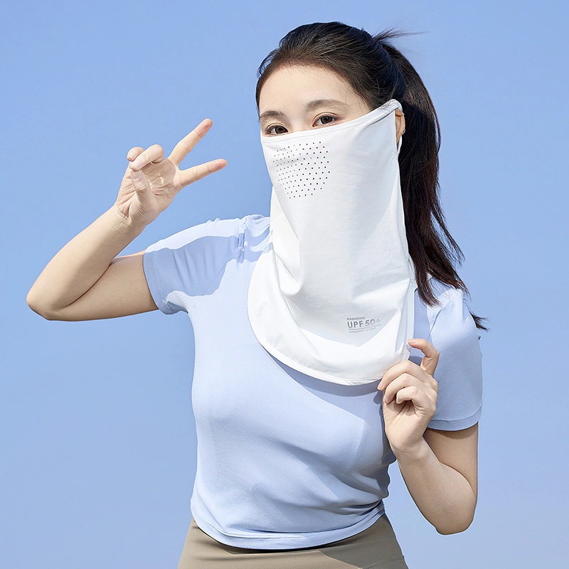 氷の絹の日焼け止めマスク男性と女性フルフェイス UV サイクリング キャップ ネック プロテクター カバー ネック マスク ベール 運転顔カバー