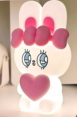 エスターバニールームライトホワイトが届きました!後ろのスイッチを押すだけで簡単にライトが付きます。充電用のケーブル付き。とにかくかわいい。