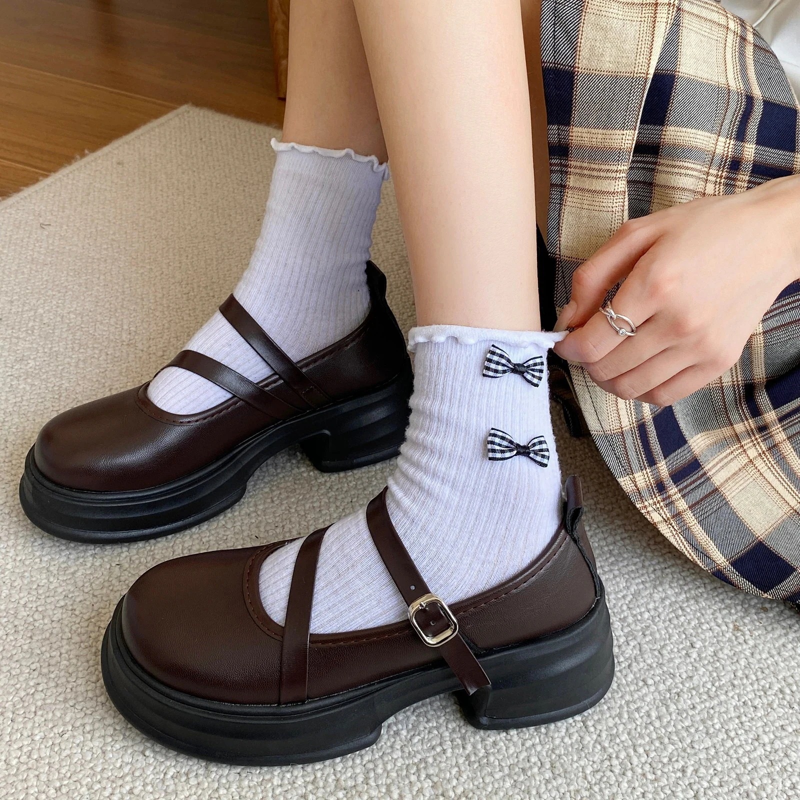 レトロなメリージェーンパンプス レディースシューズ 夏 2025年春・秋新作 合わせやすいスクール風JK厚底ローファー