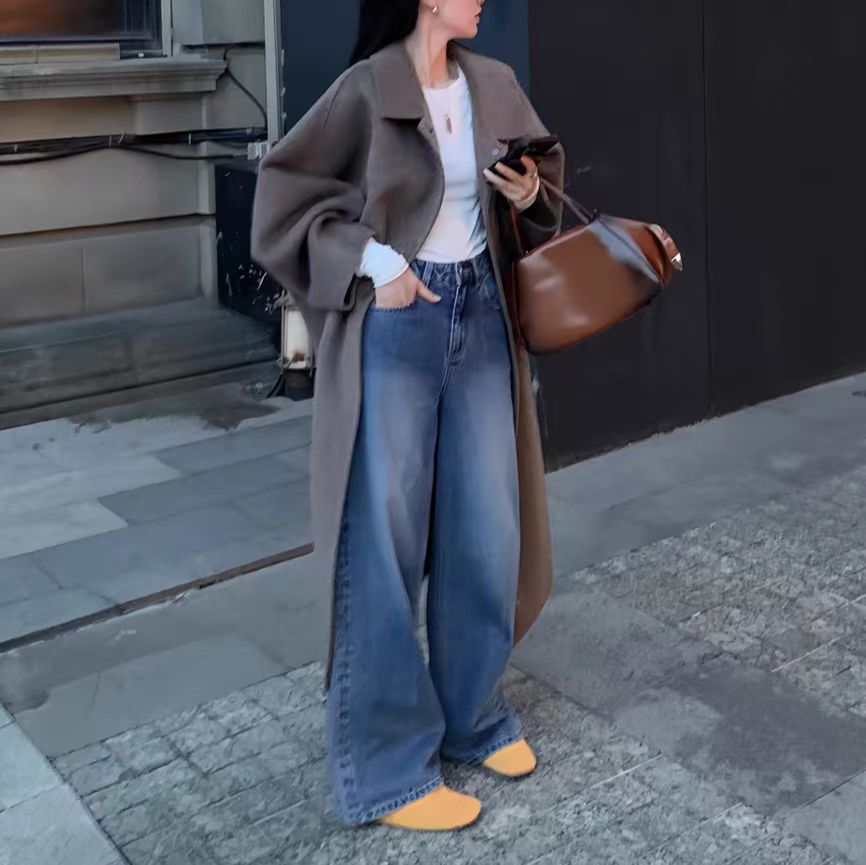 2025年 ハイウエストジーンズ ゆったり レトロ フロアレングスパンツ