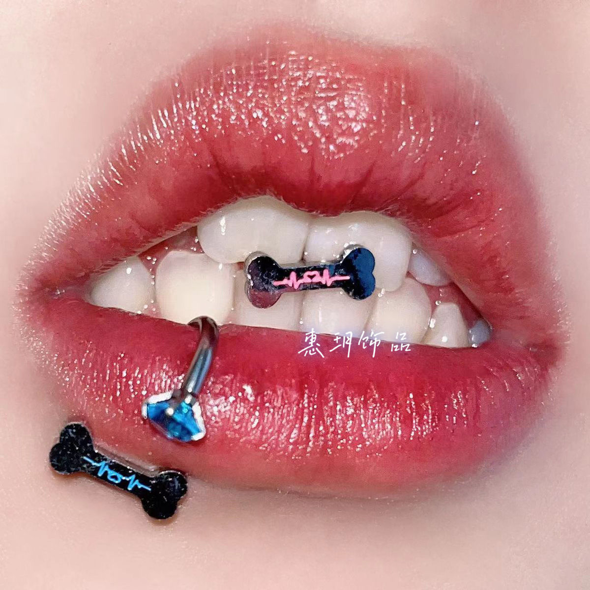 316l チタン鋼かわいい犬の骨舌ネイル漫画舌リングステンレス鋼ジュエリー舌リング