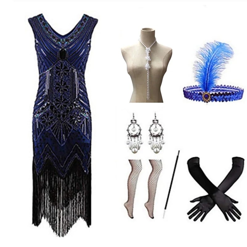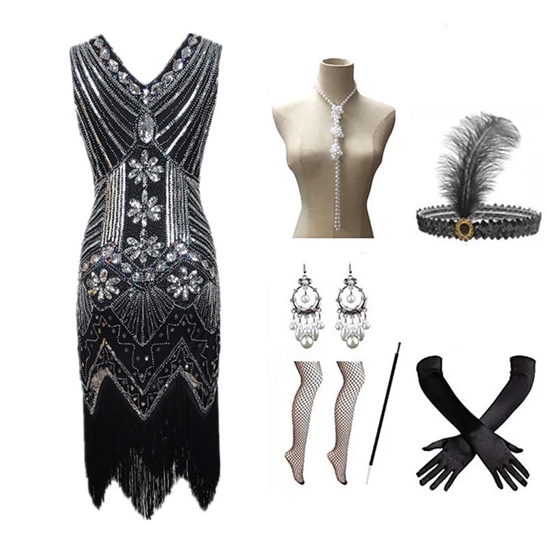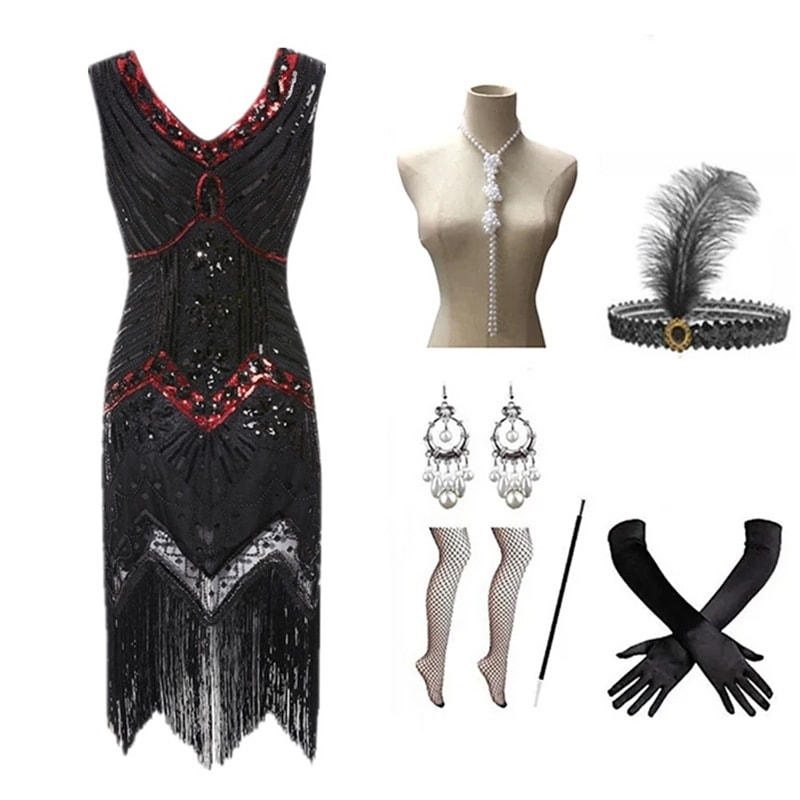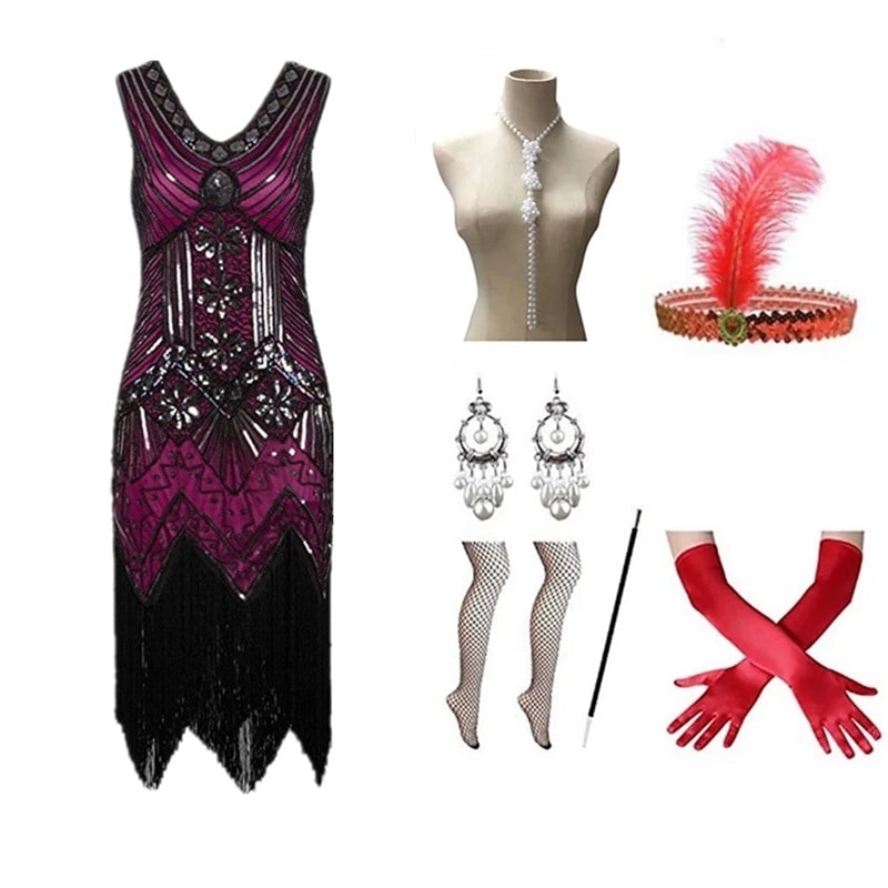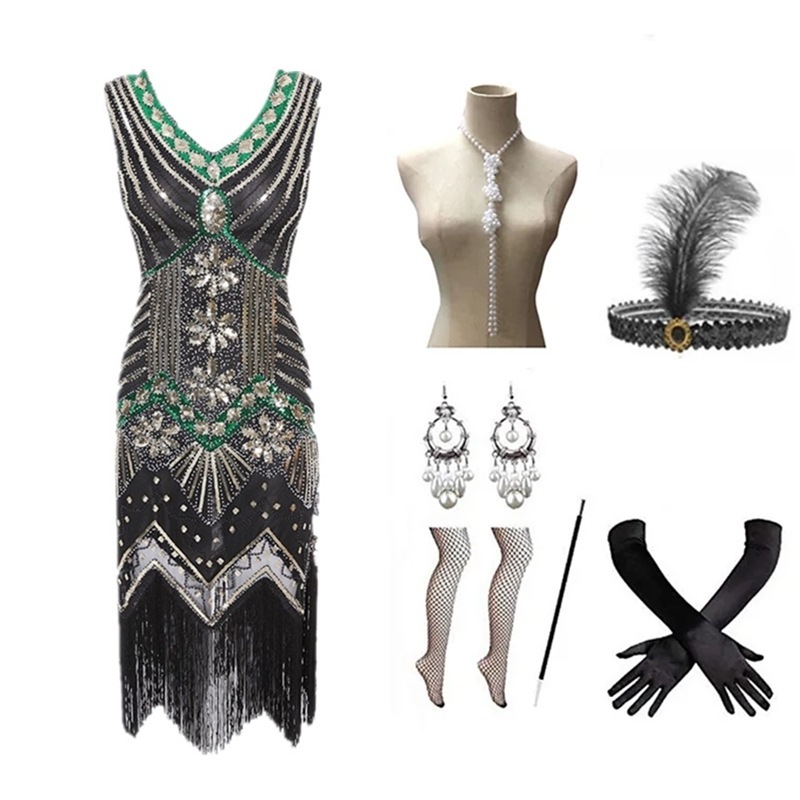 1920年代ヴィンテージギャツビードレス女性用ビーズとスパンコールのタッセルスカート