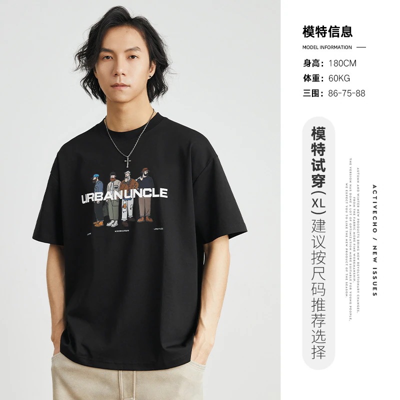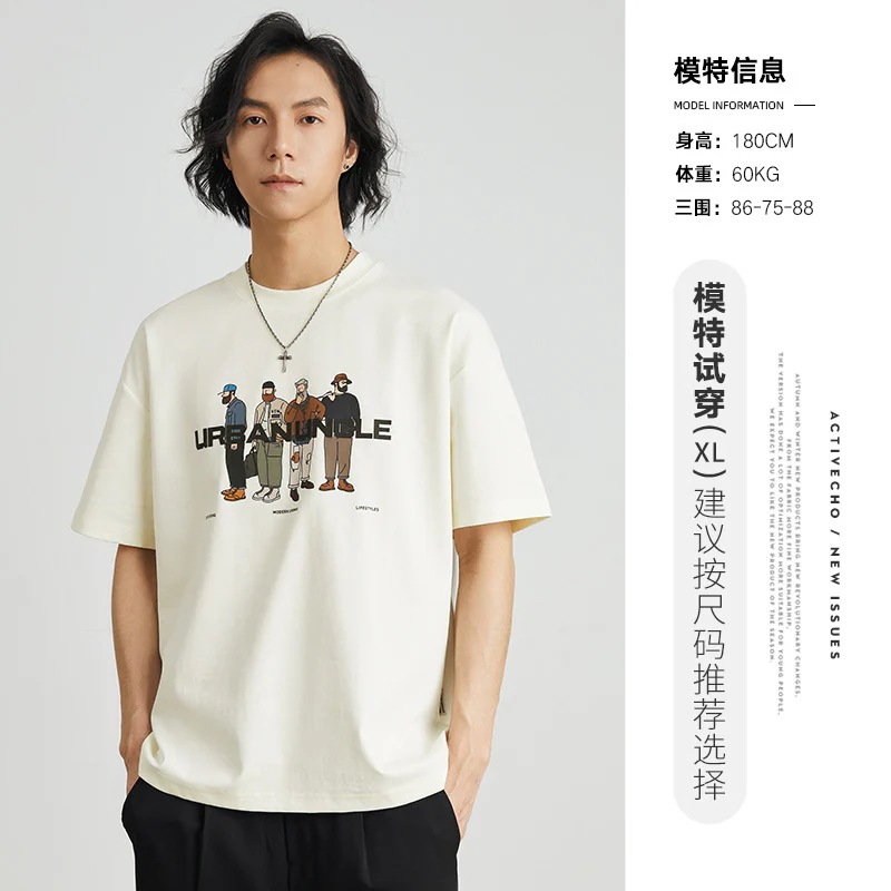 ハイストリートファンプリント半袖Tシャツメンズ夏 ルーズストリートトレンド半袖ボディシャツメンズTシャツ