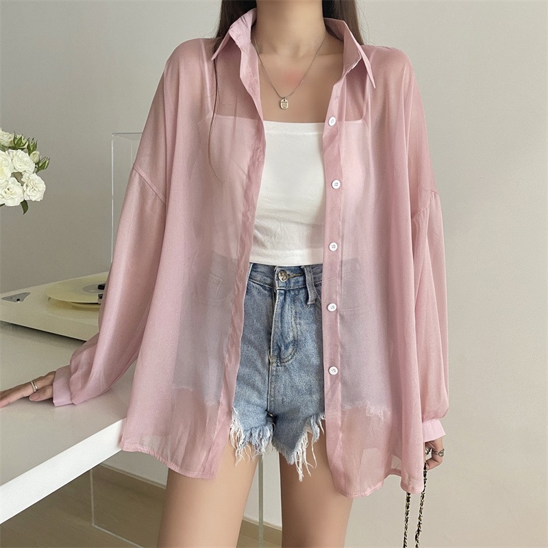 ほんのりパール感 シャツ ブラウス 夏 長袖 薄手 11カラー 日焼け止め 冷房対策 紫外線対策 レディース 大きいサイズ 着痩せ シフォン 体型カバー オシャレ カジュアル シンプル