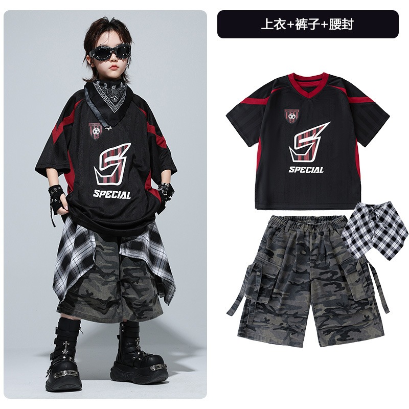 2026年 子供用ストリートダンス 小学生 迷彩柄 パフォーマンスコスチュームトレンディでクールなジャズダンス ハイホップ ストリートパフォーマンス衣装