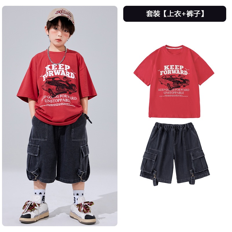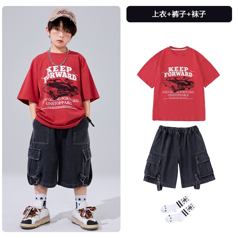 2026 子供用ストリートダンスヒップホップセット男の子用サマーアメリカンスタイルTシャツストリートパフォーマンスコスチューム女の子用パフォーマンスコスチューム