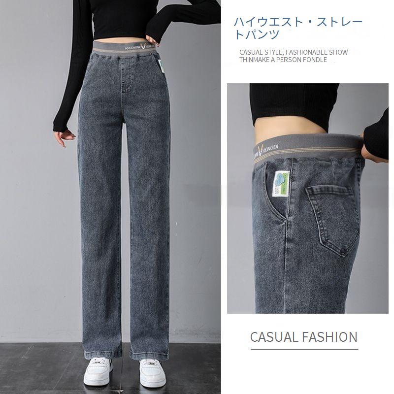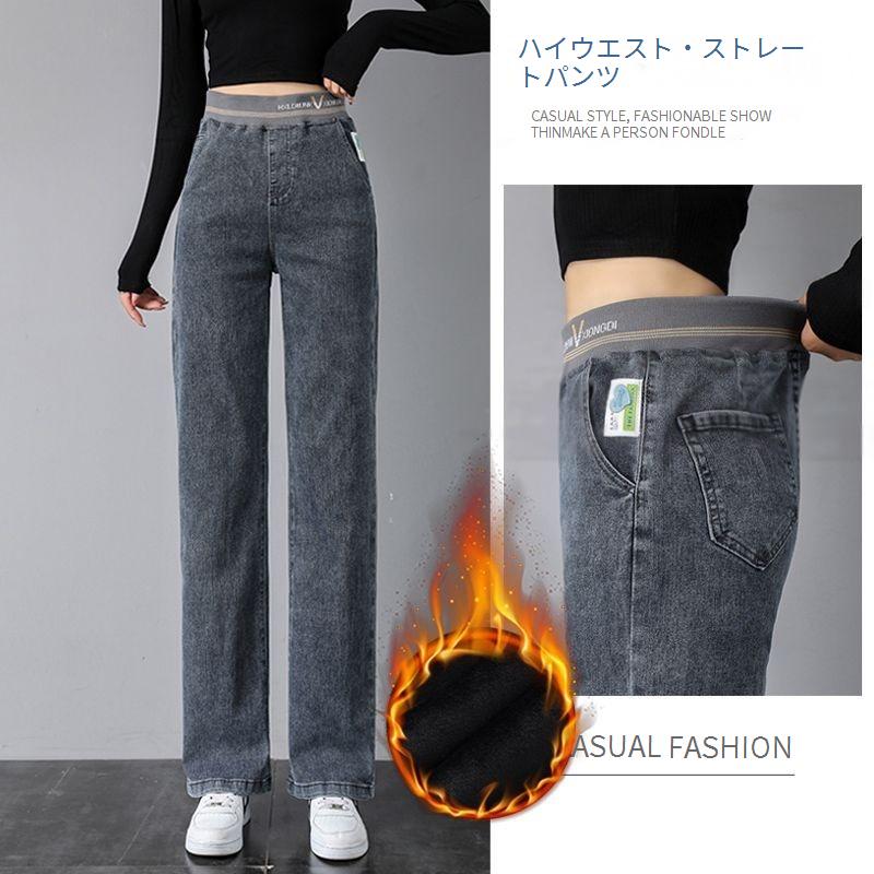 弾性ウエストストレートジーンズ女性のとはパッド入りの厚くハイウエストの細い9ワイドパンツの狭いバージョン