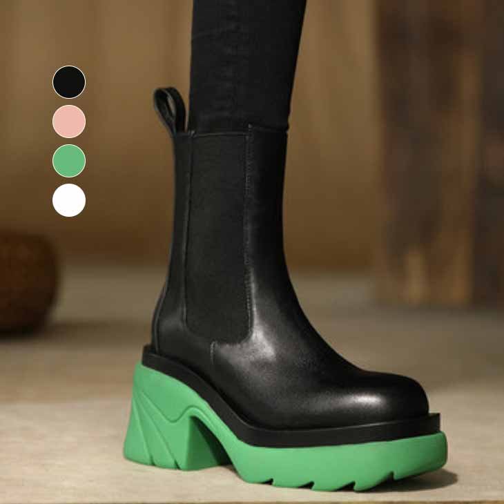 ラッキーボックス サイドゴア 厚底 バイカラー ショートブーツ カジュアル 個性的 ツートン 韓国ファッション