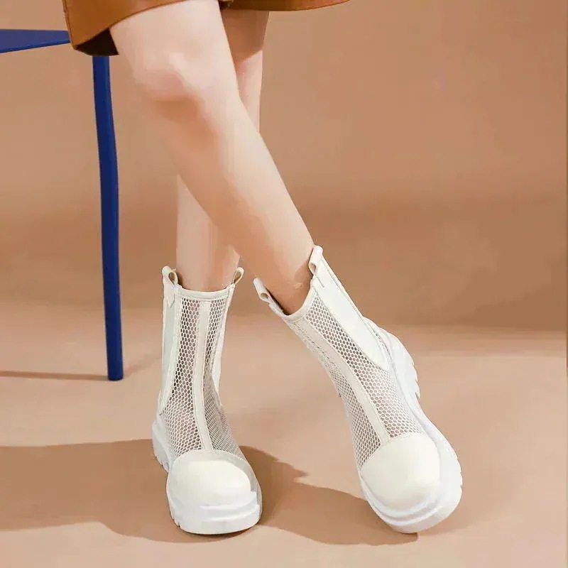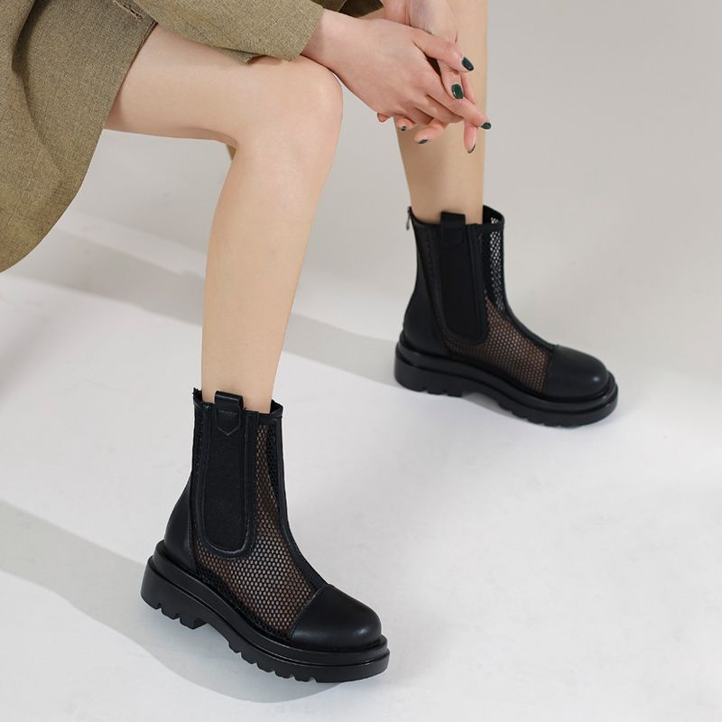 厚底シューズ ヒールパンプススニーカーシューズブーツ厚底ブーツの薄手の女性通気性メッシュブーツ23新型ネットレッド透かし彫りショートブーツ煙突ブーツ レディース 韓国