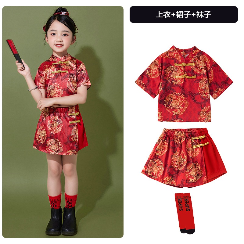 2026 子供用パフォーマンスコスチューム中国鯉馬面スカートパフォーマンスコスチュームダンスコスチューム中国幼稚園チアリーディングチーム