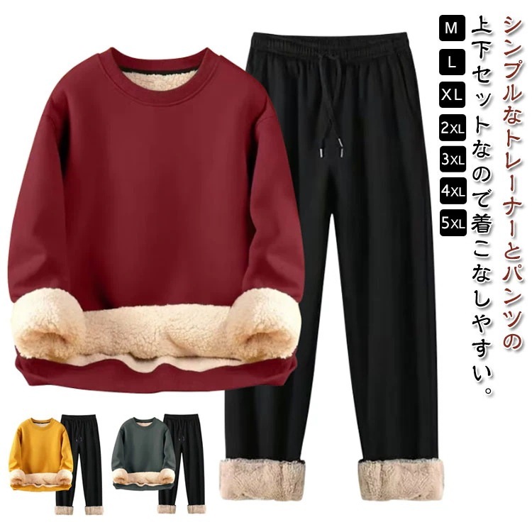 ラッキーバッグ 裏ボア スウェット セットアップ メンズ レディース 男女兼用 長袖 トレーナー スウェットパンツ 上下セット ジャージ 裏起毛 厚手 モコモコ クルーネック スウェットパ