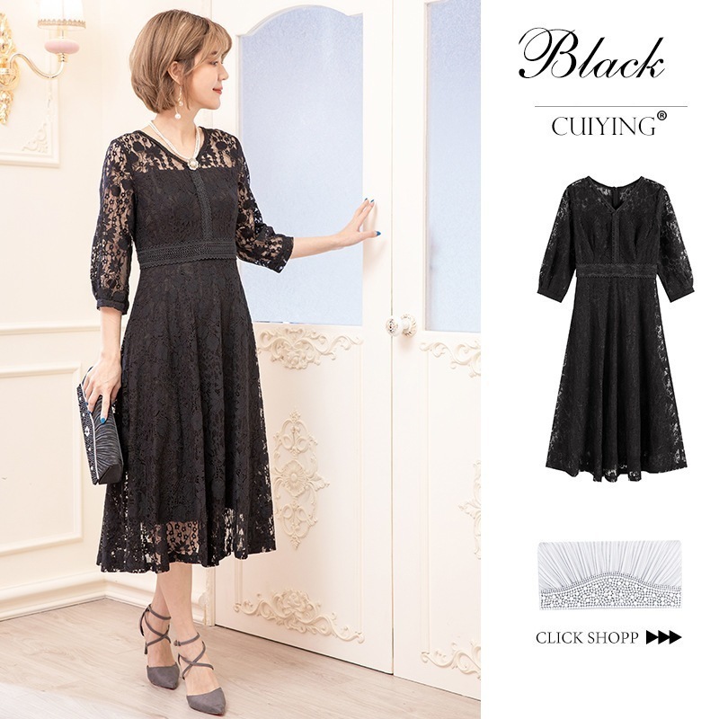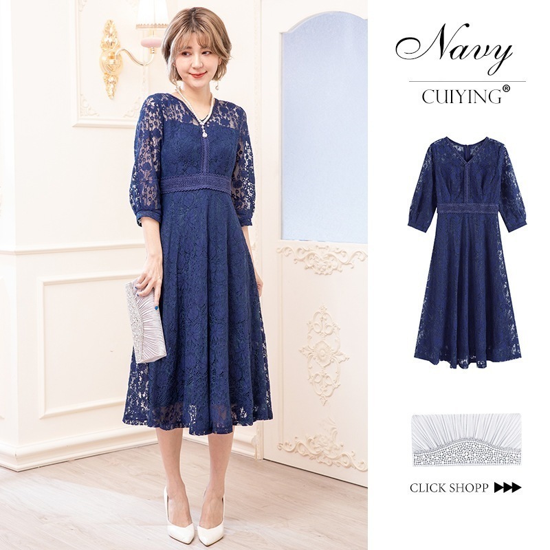 【急速出荷!】女子スカート新しいエレガントなミッドレングスvネックとクォータースリーブレースドレス88362
