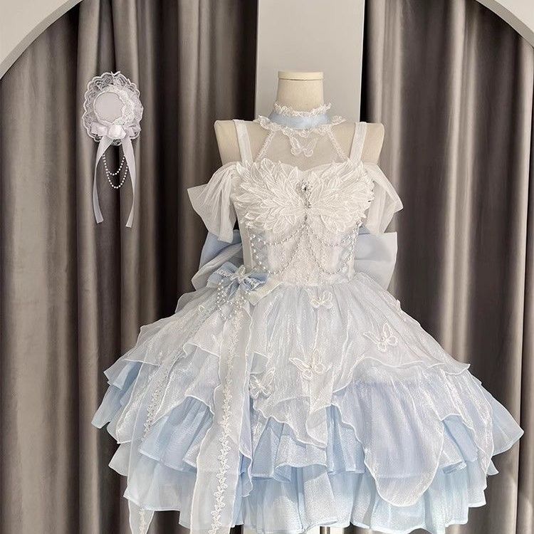 【3日出荷】白鳥の王女ドレスロリータ蝶のロリータ成人式ポンポンスカート誕生日 春服 レディース