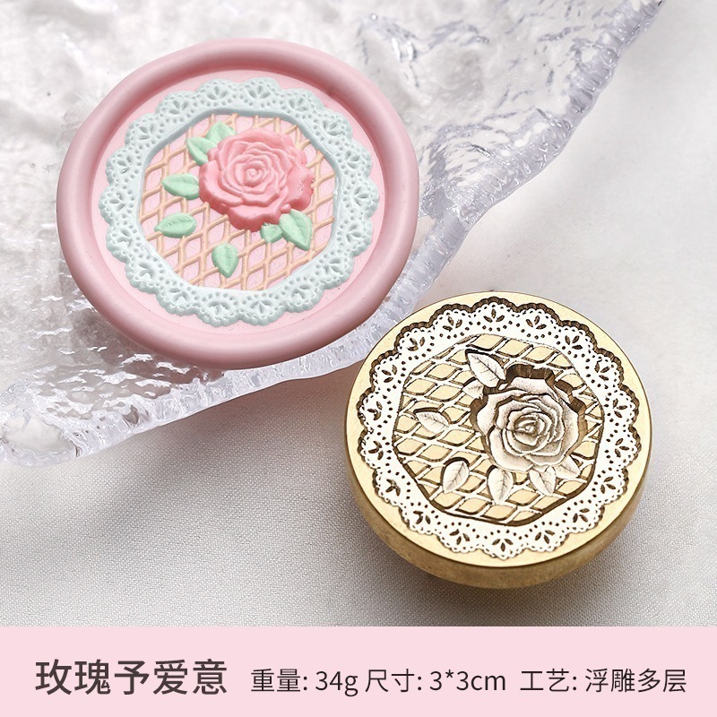 [3日出荷]激安本日限定シーリングワックスファイアーペイント銅ヘッドシールヘッド新しいレースシリーズ棚上の新しい絵スタンプギフト包装封筒シールdiyハンズオン固体彫刻真鍮