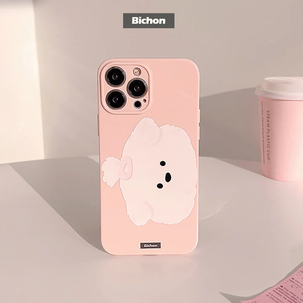 油絵風ふわふわ子犬デザイン iPhone 14 スマートフォンケース Apple 16 Pro Max 対応 11 シリコン 12 対応 15 iPhone 16 Pro Max
