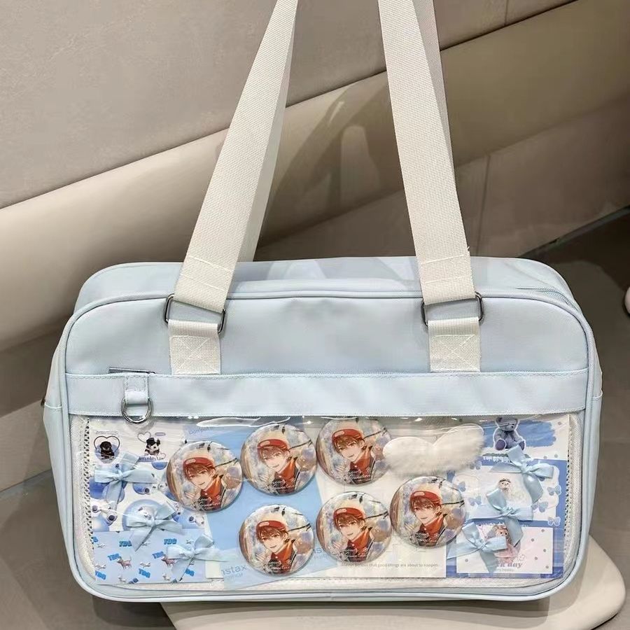 痛バッグ 痛バ 商品ぬいぐるみ入れ 缶バッジ入れ 大容量 二次元 学生バッグ メッシュプレート付き ショルダーバッグ 推し活