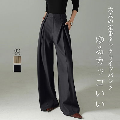 限定SALE!ワイドパンツ ストレートパンツ タックパンツ レディース ロング ボトムス 春秋 春 夏 秋 無地パンツ ロングパンツ タックパンツ イージーパンツ ワイド オフィス 無地 美シルエット