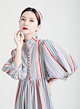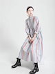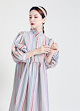 人気推薦マルチストライプ シャツワンピース ロング 春 夏 レディース ハイネック ロングワンピース シャツ ワンピース 個性的 ゆったり ワンピース 七分袖 ロング丈 ワンピース ゆったり ファッシ