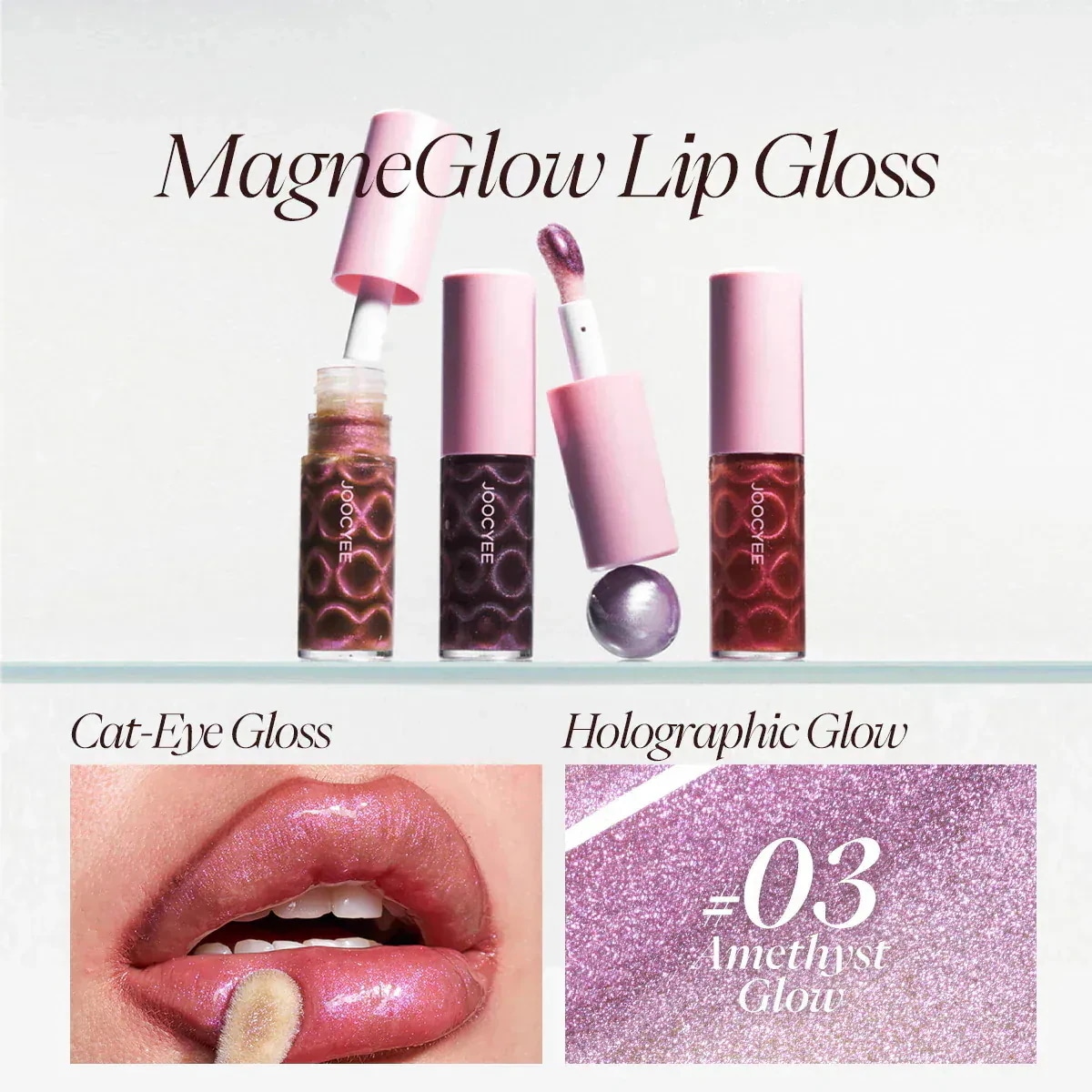 色味もすごく可愛くて、テクスチャーも重すぎずいい感じです。02はラメがピンクで03はラメが紫です。02は単体で使ってもしっかり色付きます。