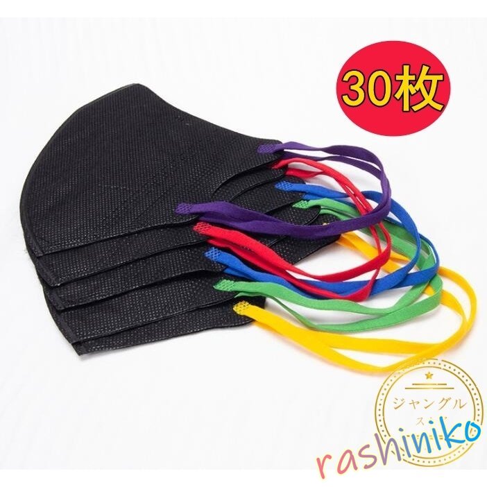 マスク 不織布マスク 使い捨て 立体マスク 虹色 お洒落 耳が痛くない 30枚 白 黒 小顔効果