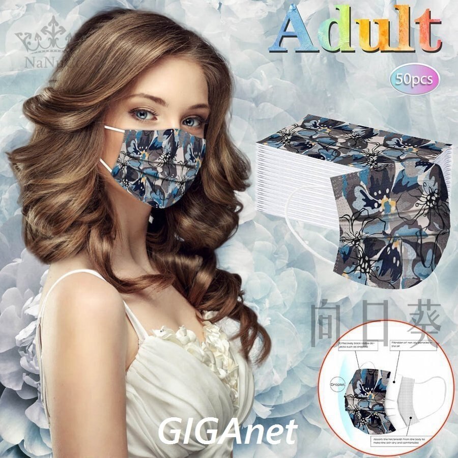 花柄不織布マスク 50枚 使い捨て 大人用 花粉対策  レディース 柄マスク 不織布マスク ウイルス