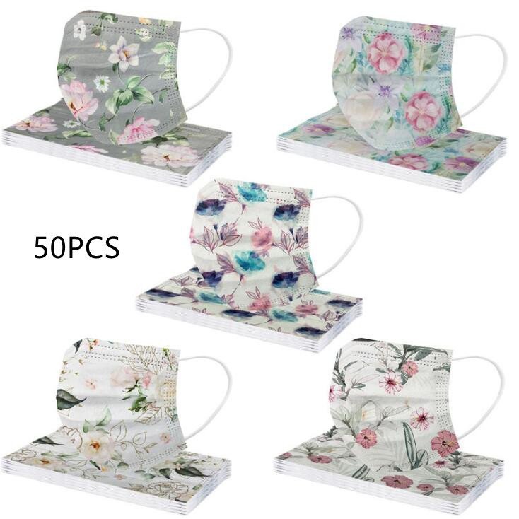 マスク 50枚入り 使い捨て 不織布 マスク カラー 花柄 母の日 2021 ギフト 新品 99%カ