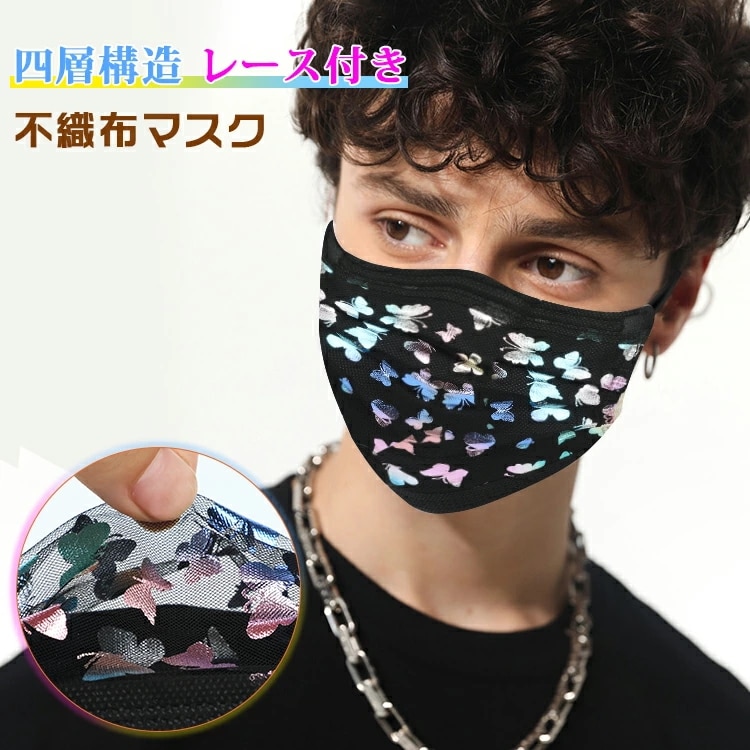マスク 50枚 キラキラマスク 50枚 可愛い チュール レース柄 不織布マスク 男女兼用 春夏用