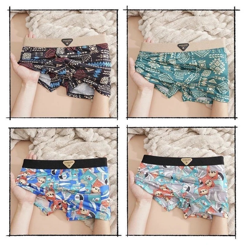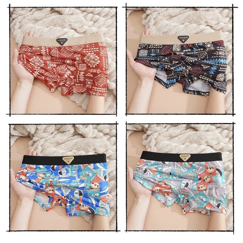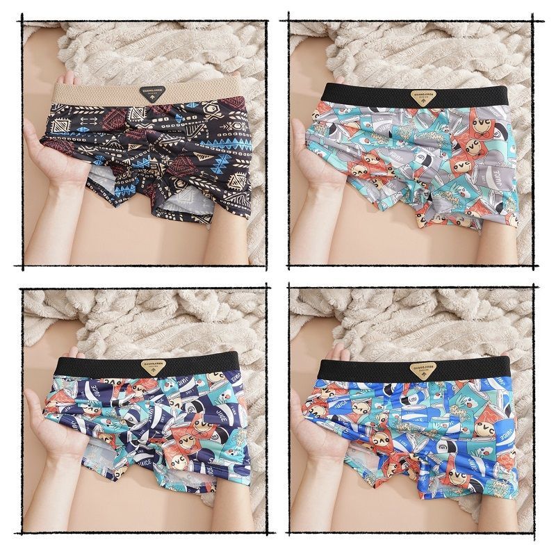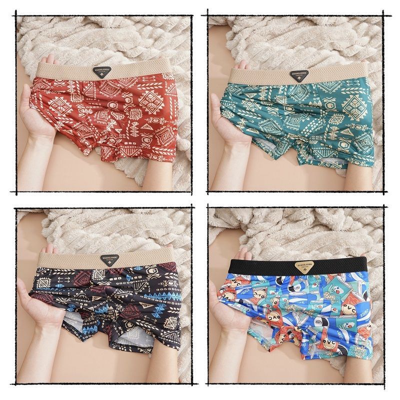 レトロ個性メンズアイスシルクショーツゆったり吸汗 速乾 下着ボクサーパンツ4枚セット