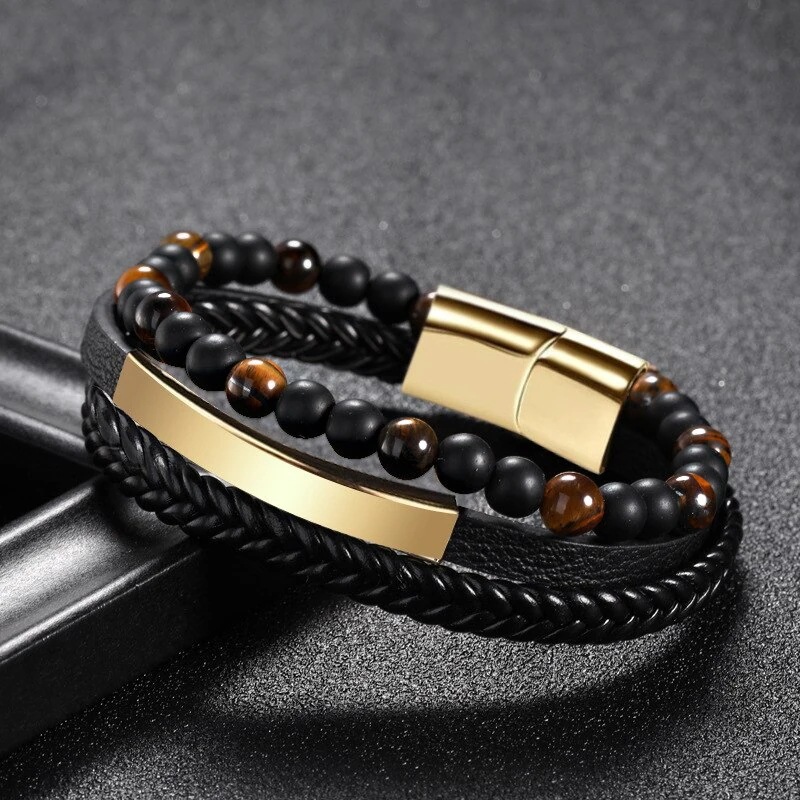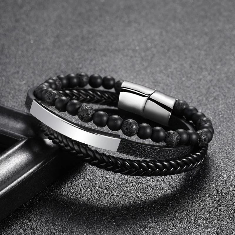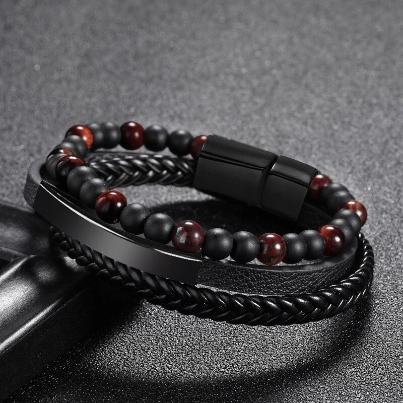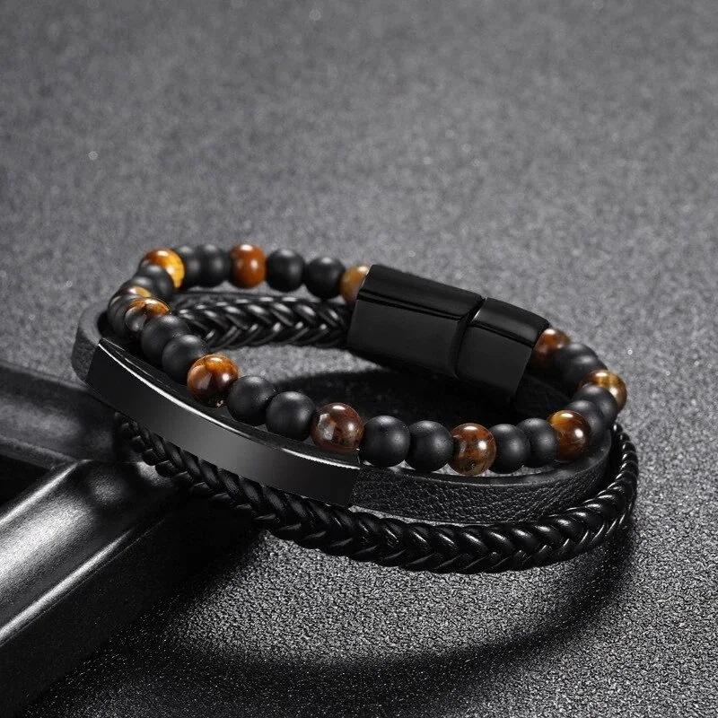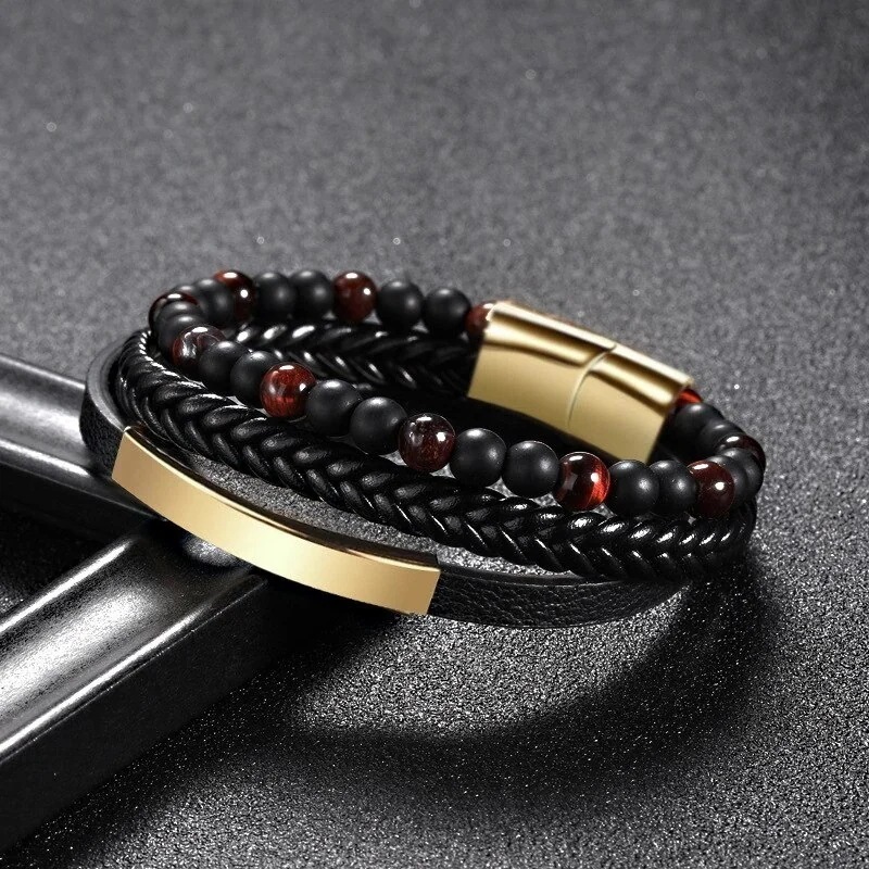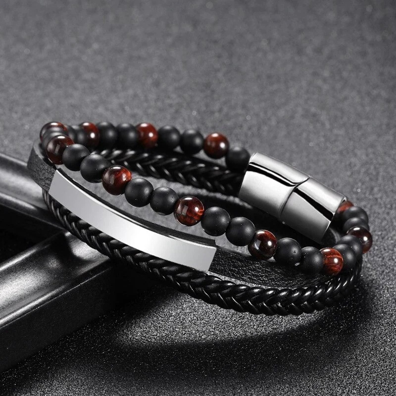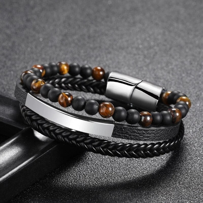 多層レザー編組ブレスレットメンズパンクり合磁気ブレスレットブレスレットステンレス鋼