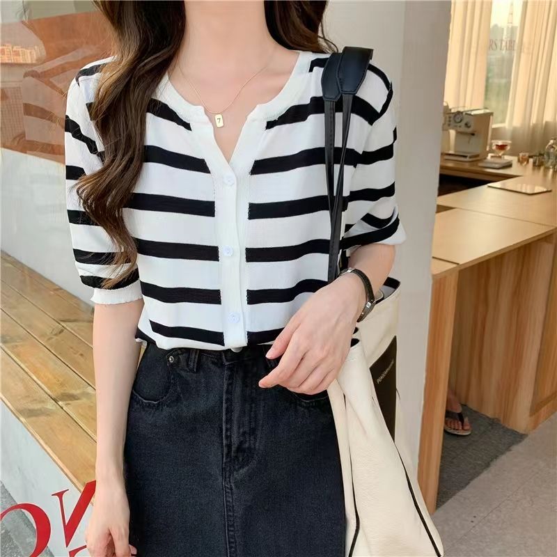 2025新作韓国ファッション春夏服ニットレディースカーディガン 大きいサイズ Vネック /カジュアル 薄手 はおり 涼しい サマーニット UVカット 長袖 トップス レディース エコロコ