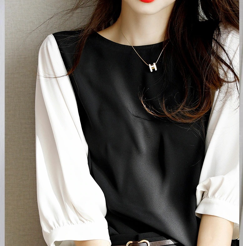 2023夏ブラウス レディース 半袖 切り替えブラウス トップス 春 ゆるブラウス デザイ感 人気 着痩せ Tシャツ 柔らか カジュアル 可愛い,チェック柄 無地