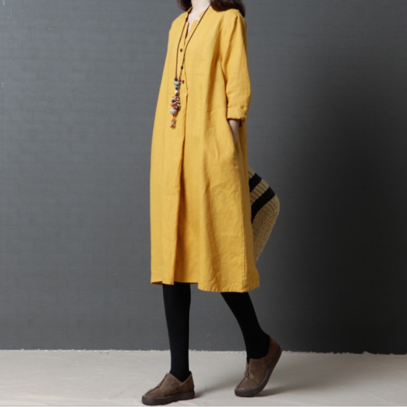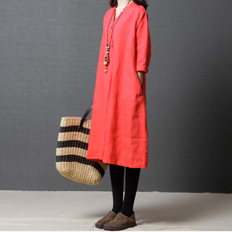 ドレス春の新作 2023 韓国スタイルのゆったりとしたプラスサイズの女性のドレスファッション快適な無地 V ネックシャツドレス ワンピースフィルムレッド
