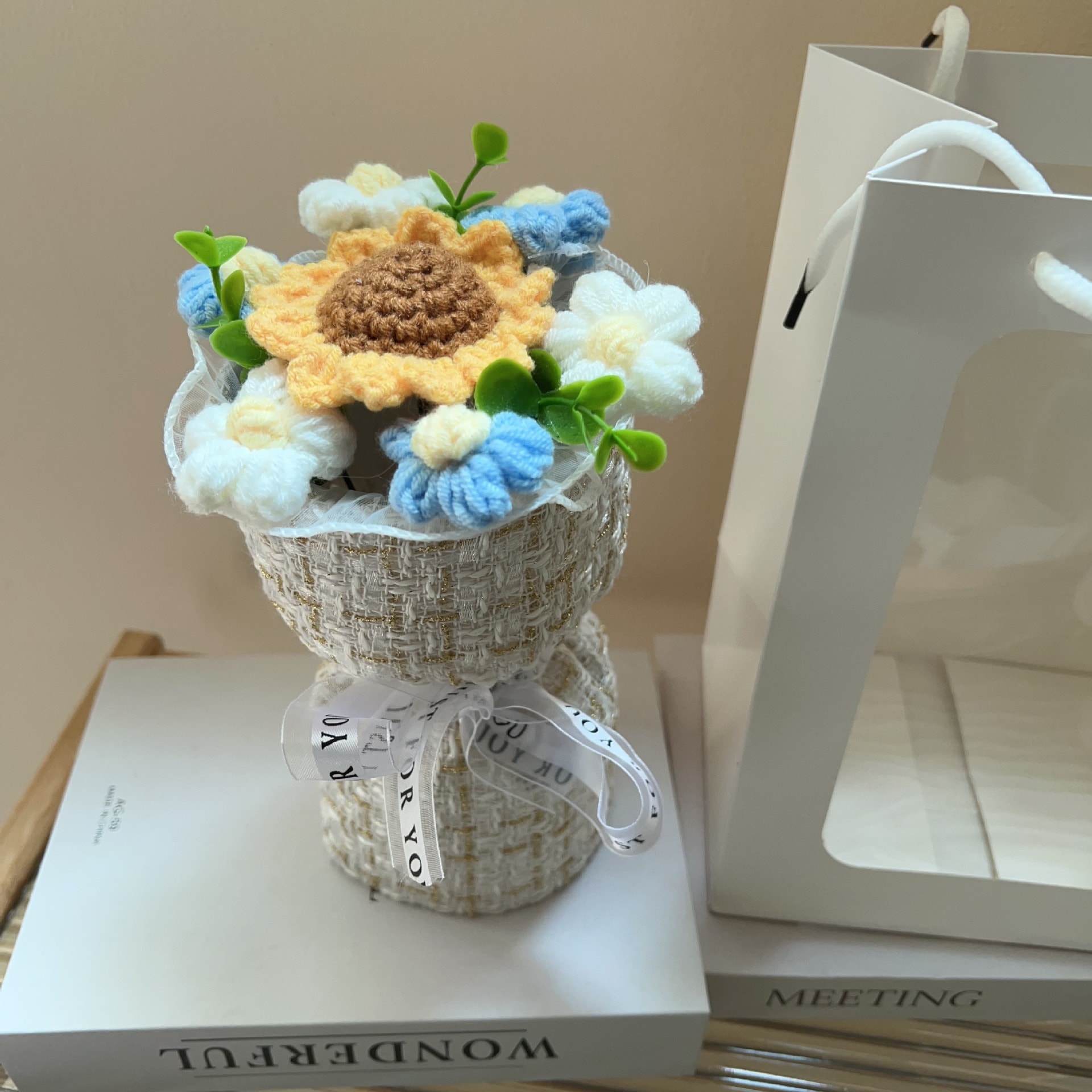 贈り物には必ず必要だ クリエイティブなニットウールのひまわりの小さな香りのスタイルの花束誕生日38歳の絶妙な小さなギフトの花束
