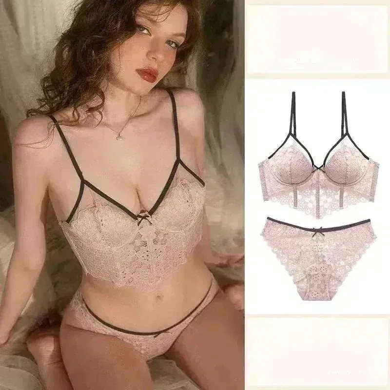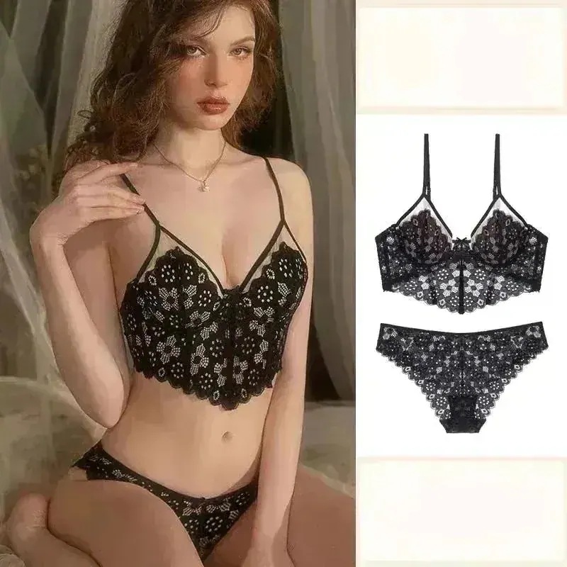 可愛いセット下着セクシーな下着の小さな胸を集めて大きな美背中を見せるソフトスチールレースの薄い純欲ブラジャーセット 一瞬で引き缔まる!补正下着 新調した シームレスブラ 可愛いセット下着 新