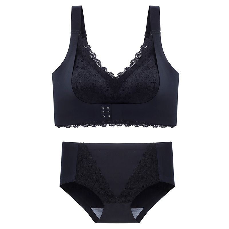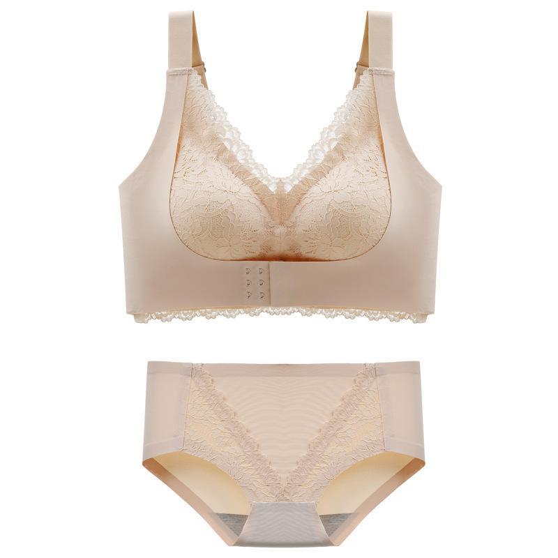 2セット 中厚カップノンマーキング下着 レディース ノンワイヤー ギャザリング 副乳をかき集める チョッキ式 ブラジャー 上下セット