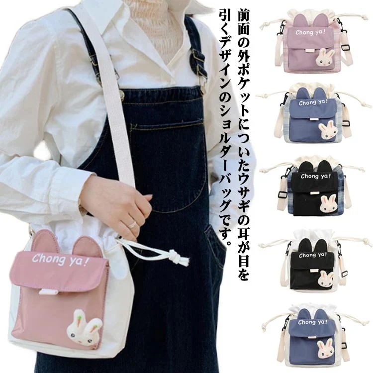 ウサギ耳 2way 肩掛け 斜め掛け 手提げ 巾着 ポーチ ポシェット 巾着 鞄 かばん チェック柄 うさぎ 兎 ポーチ レディース 子供 軽量 おしゃれ かわいい シ