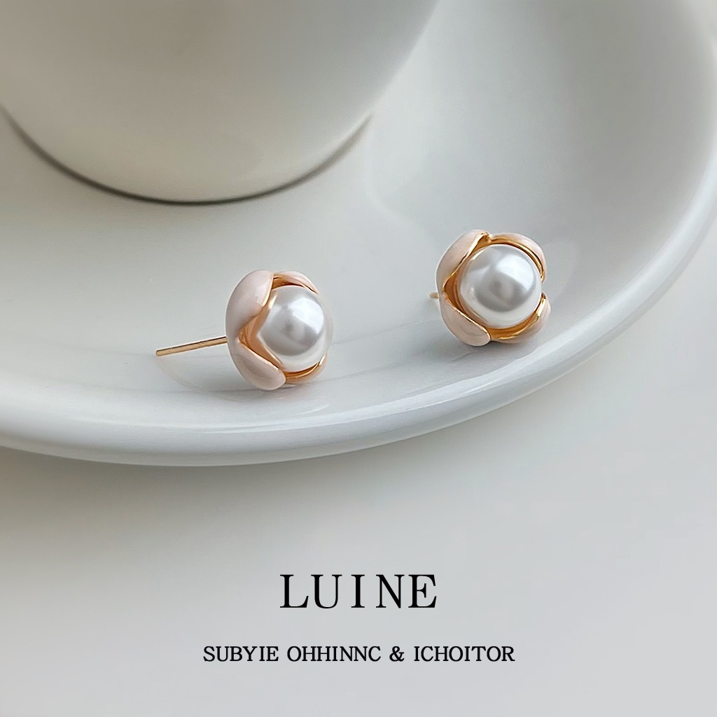 【ナチュラルテイスト】七宝焼きフラワーピアス 清楚なナチュラルコーデに 淡水パールのつぼみが可憐 S925素材で肌に優しい 春の装いのアクセント