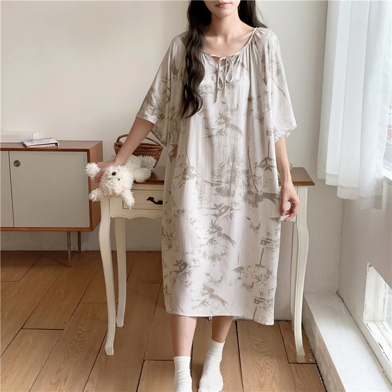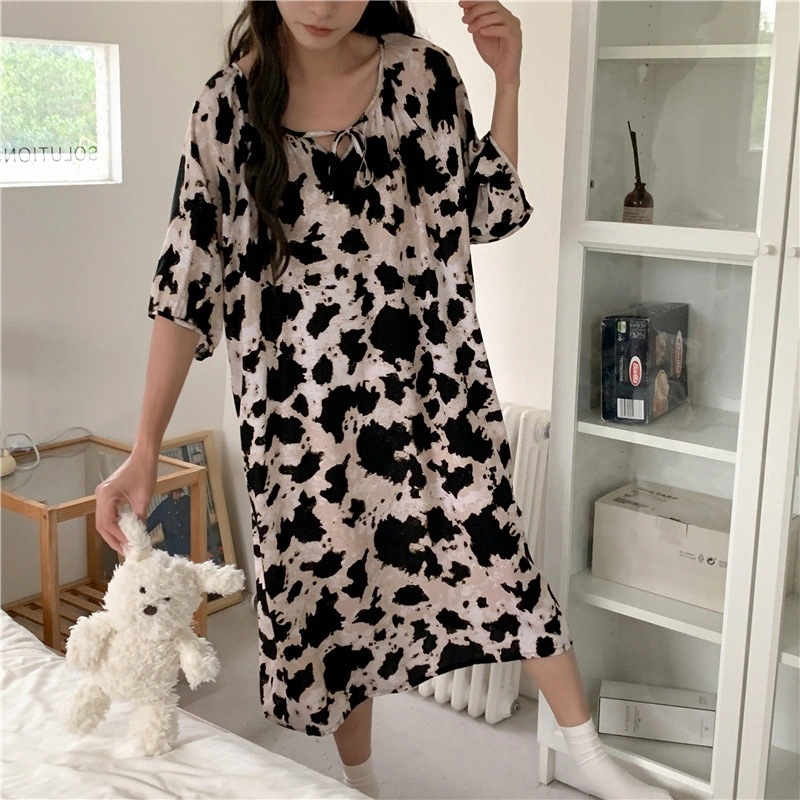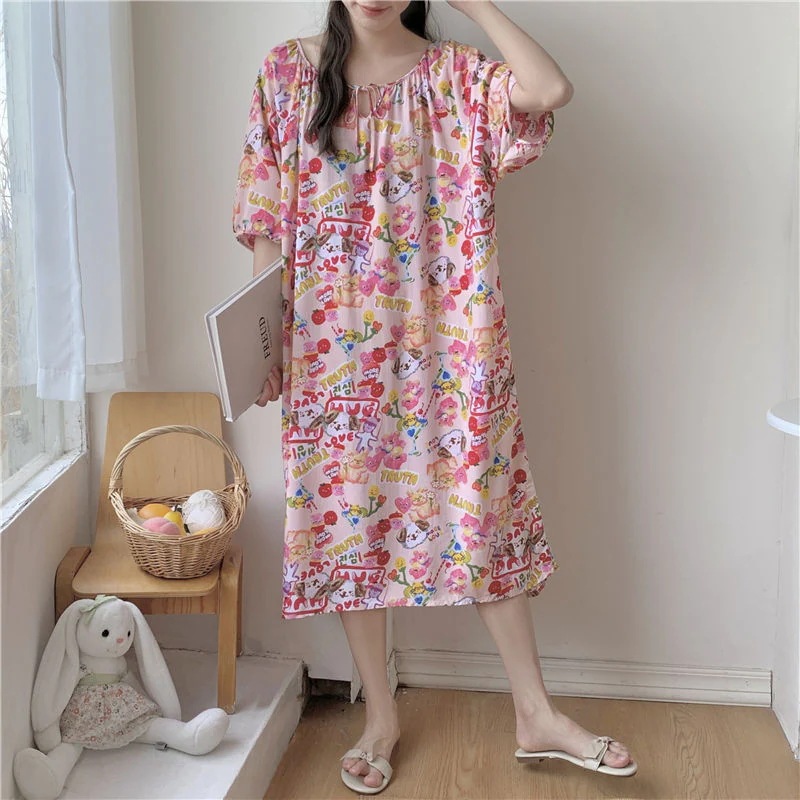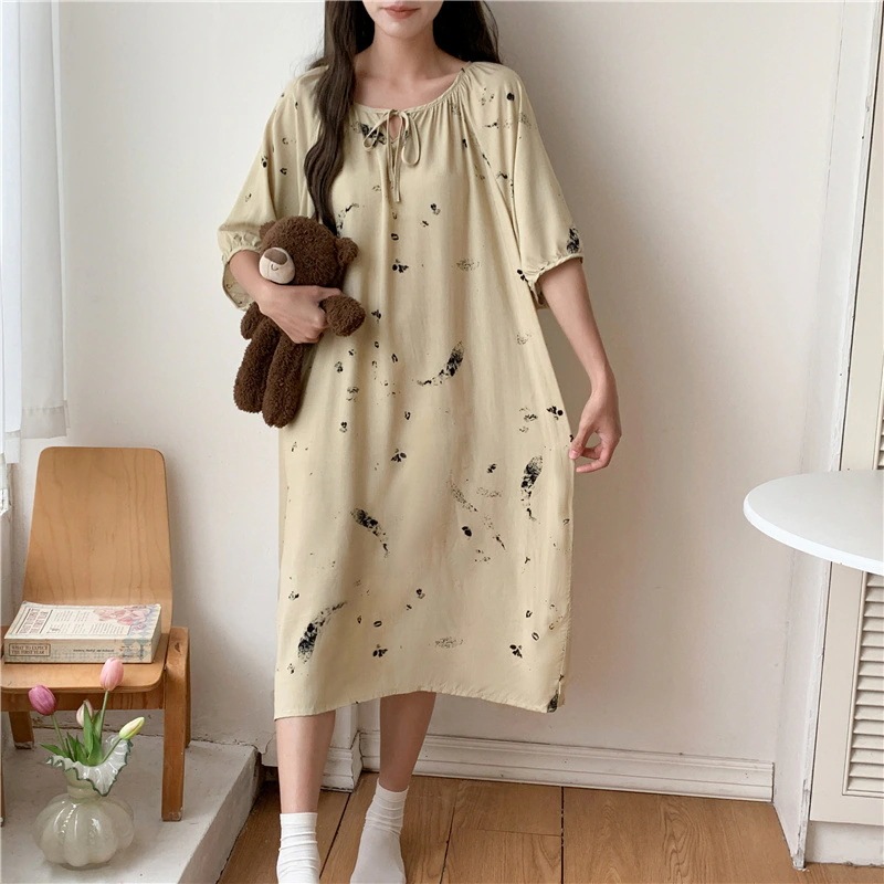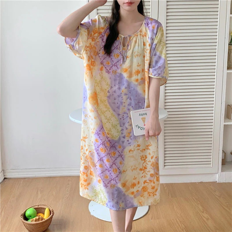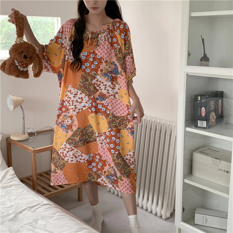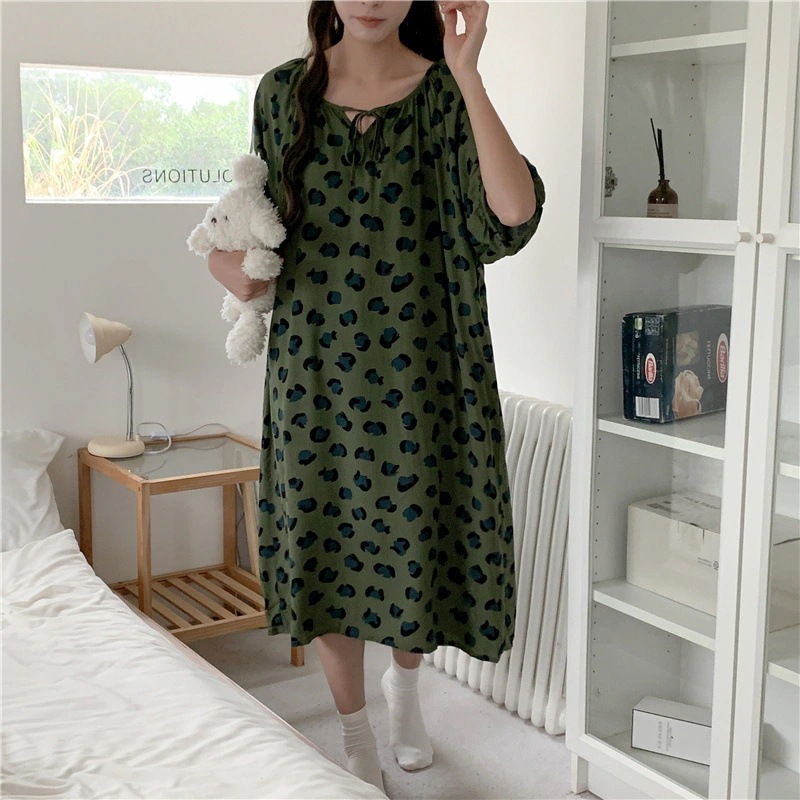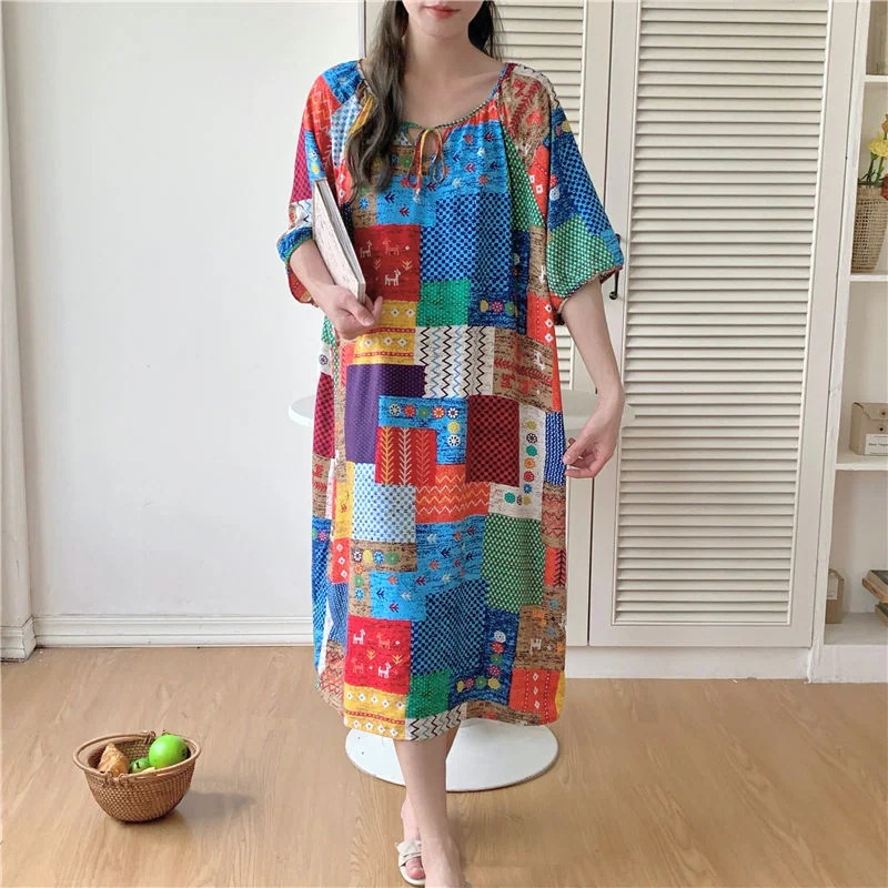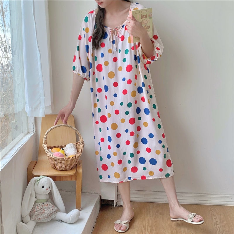 新作の女性用春夏の大型サイズ綿シルク素材の寝間着 中国紅のドット柄ドレス上品なロングスカート綿シルク素材の寝間着と薄手のホームウェアセット